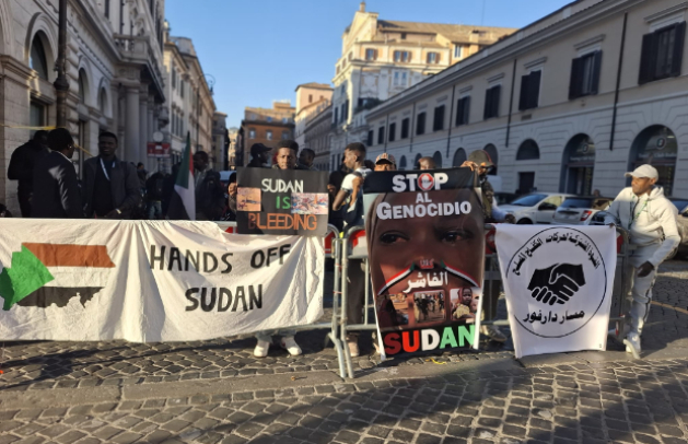 “Stop all’invasione degli Emirati in Sudan, stop al genocidio dei mercenari degli Emirati ad El-Fasher”: con questo slogan la comunità sudanese in Italia è scesa in piazza oggi pomeriggio a Roma, in un sit-in a Piazza Santi Apostoli per denunciare l’inerzia della comunità internazionale e chiedere interventi urgenti per fermare il massacro in corso nel Paese africano. Decine di persone, tra cui famiglie e bambini, hanno esposto cartelli e foto delle vittime, accusando gli Emirati Arabi Uniti di fornire armi e fondi alle milizie delle Rapid Support Forces (Rsf), responsabili di stragi, torture e violenze sessuali nella regione del Darfur. I manifestanti hanno ricordato che, dopo la caduta di El-Fasher a fine ottobre, migliaia di civili sono stati uccisi o costretti alla fuga, mentre la fame e l’assenza di aiuti umanitari aggravano la crisi. “Chiediamo all’Italia e all’Unione europea di fermare questo genocidio e di rompere il silenzio sull’aggressione al Sudan”, raccontano gli esponenti della comunità sudanese, denunciando il coinvolgimento diretto di potenze straniere e il disinteresse delle istituzioni italiane. Tra le storie arrivate in piazza anche quelle di chi ha perso contatti con la famiglia o ha dovuto pagare riscatti per liberarli da rapimenti e violenze. Molti hanno evocato la fuga dal Darfur e il ritorno forzato in Ciad, dove oggi i rifugiati vivono in condizioni di estrema povertà. Il sit-in si è chiuso con cori in arabo – “un esercito unico, un popolo unico” – e con l’appello a fermare la vendita di armi che continua ad alimentare una guerra dimenticata.